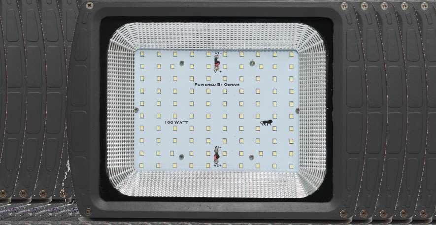 Heavy-duty aluminium flood light for stadiums and warehouses.